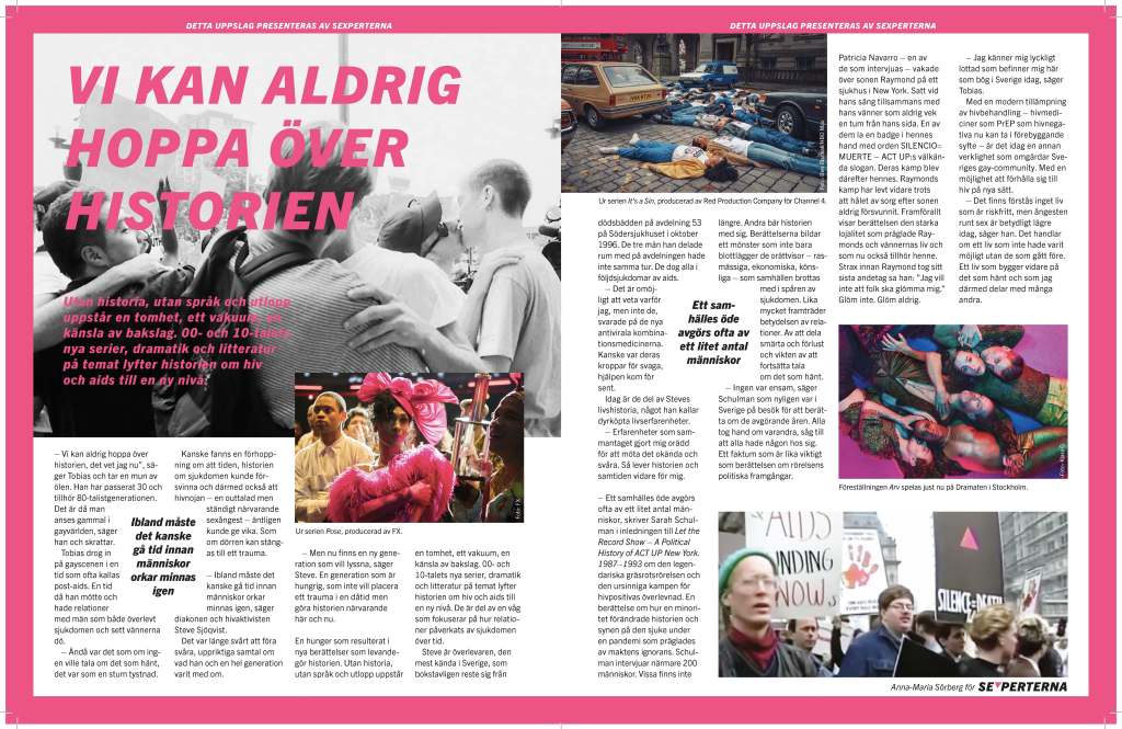 En hunger som resulterat i nya berättelser som på olika sätt levandegör historien. Utan historia, utan språk och utlopp uppstår en tomhet, ett vakuum. 00- och 10-talets nya serier, dramatik och litteratur på temat hiv och aids lyfter historien till en ny nivå. De är del av en våg som fokuserar på hur relationer påverkats av sjukdomen över tid.